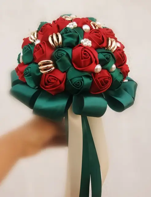 Hand Made Red And Emerald Green Bride Bridal Wedding Bouquet
