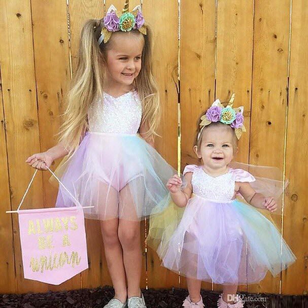 2019 Sequined Baby Girl Princess Tutu Dress Rainbow Color Lace