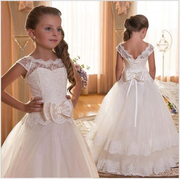 Kids Wedding Dresses With Cap Sleeves And Beaded Sash 2017
