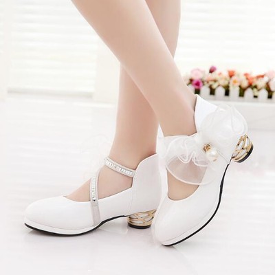 Kids Diamante Ankle Strap High Heels Princess Shoes Flower Girls