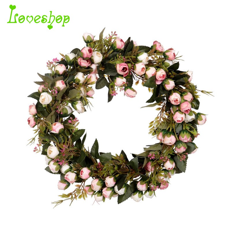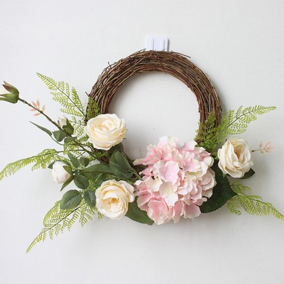 Rustic Rattan Silk Rose Hydrangea Flower Wreath Door Wall Home