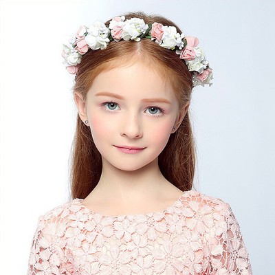 1 Pc Baby Rose Flower Garland Chic Wedding Flower Girls Headband Elast