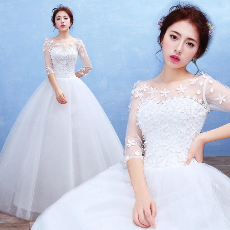 Three Quarter Sleeve Floral Lace Wedding Dress Brydealo