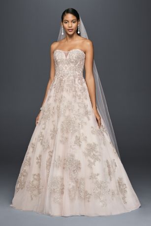 Oleg Cassini Subtle Pink 3d Floral Wedding Dress Style Cwg464