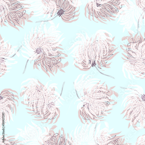 Dahlia Flower Seamless Pattern Pastel Pale Light Blue Floral