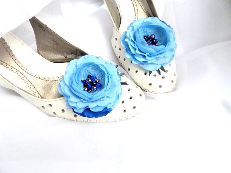 Something Blue Wedding Shoes Blue Flowers Silk Flowers Etsy