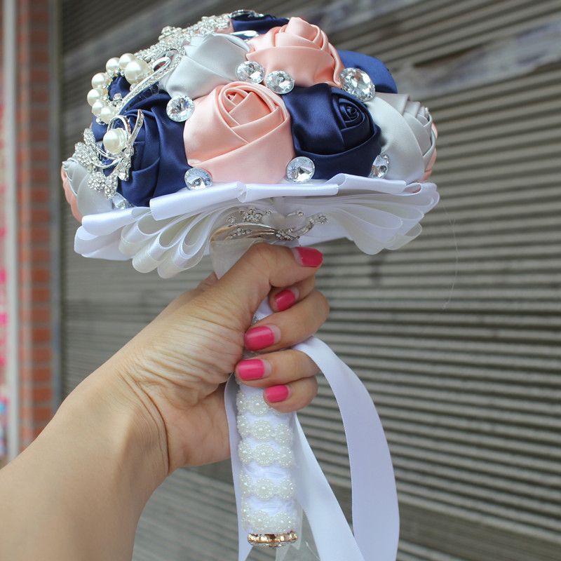Navy Pink White Wedding Bridal Bouquets Simulation Flower Wedding