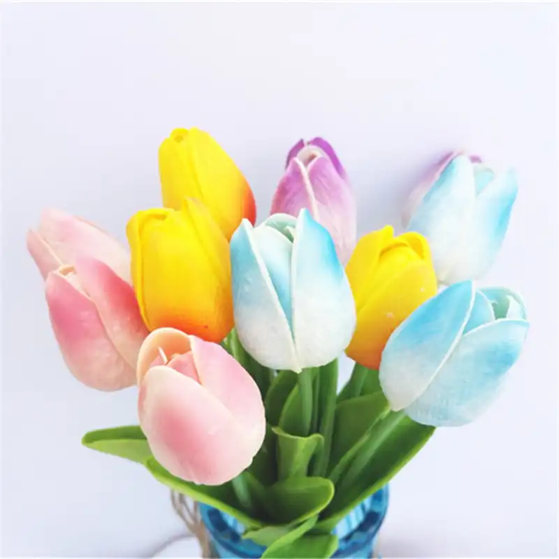 Pink Blue Purple Yellow 12pcs Table Tulips Dutch Tulip Bouquet