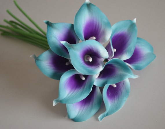 10 Teal Purple Picasso Calla Lilies Real Touch Flowers Diy Etsy