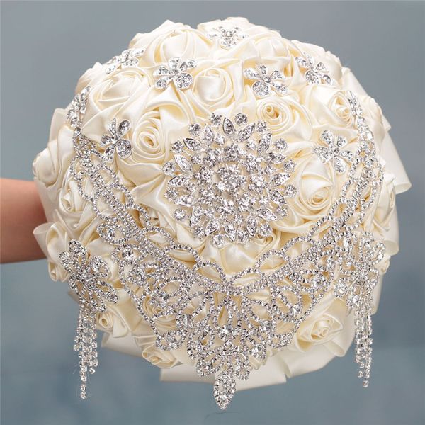 Luxury Tassel Diamond Brooches Bridal Bouquets Ivory Satin Wedding