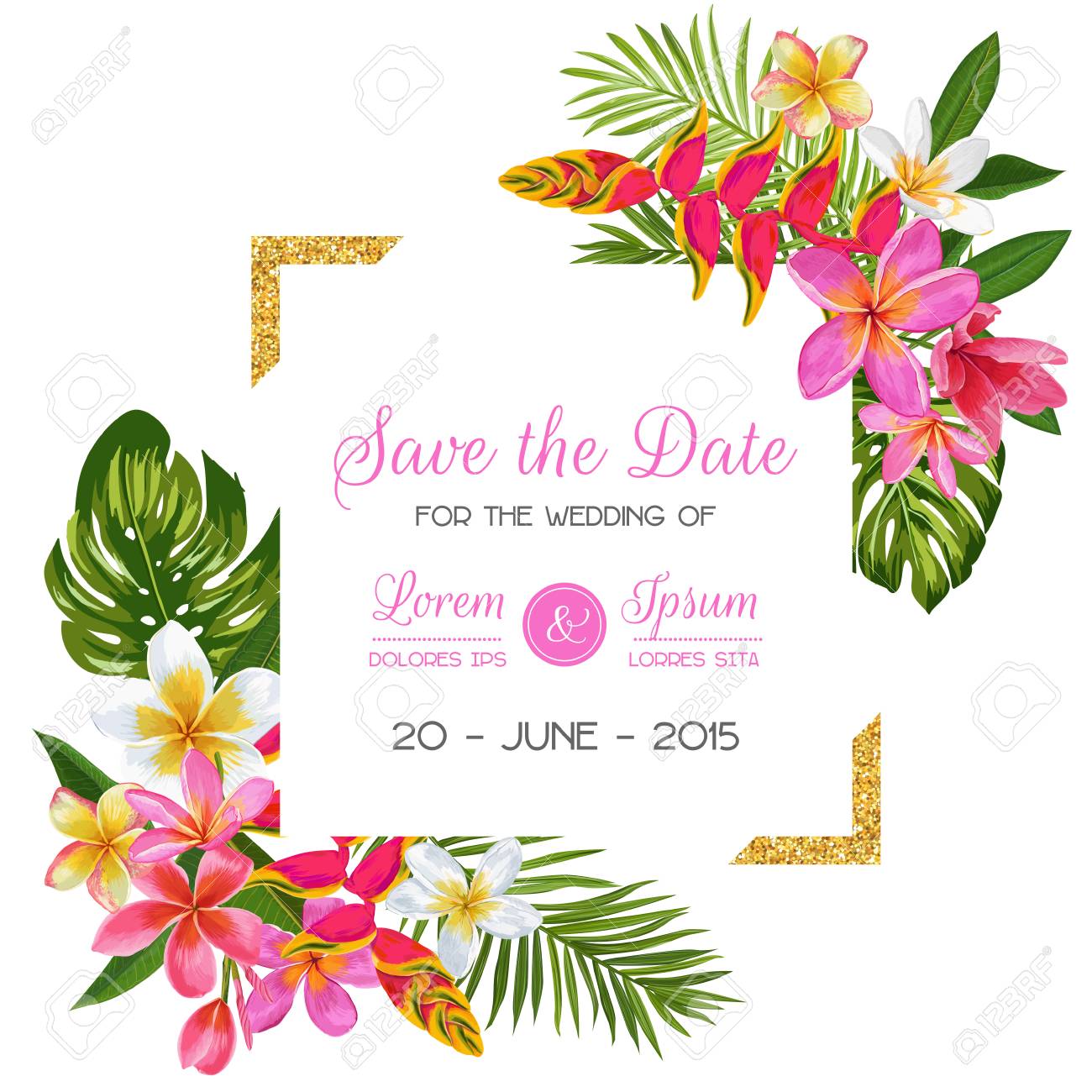 Wedding Invitation Or Card Design With Exotic Tropical Flowers