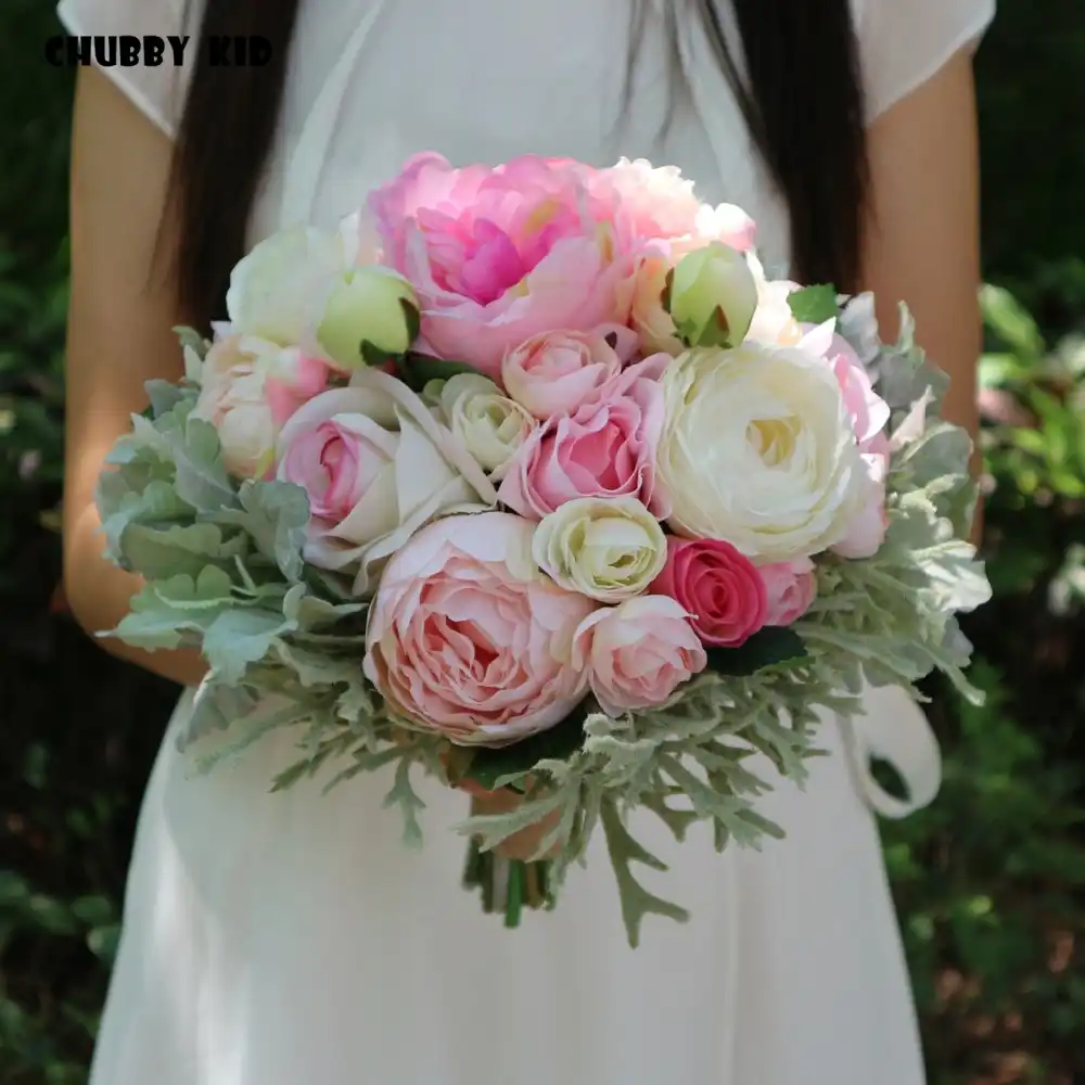 Big Size Artificial Flower Ivory Rose Bridesmaid Holding Bridal
