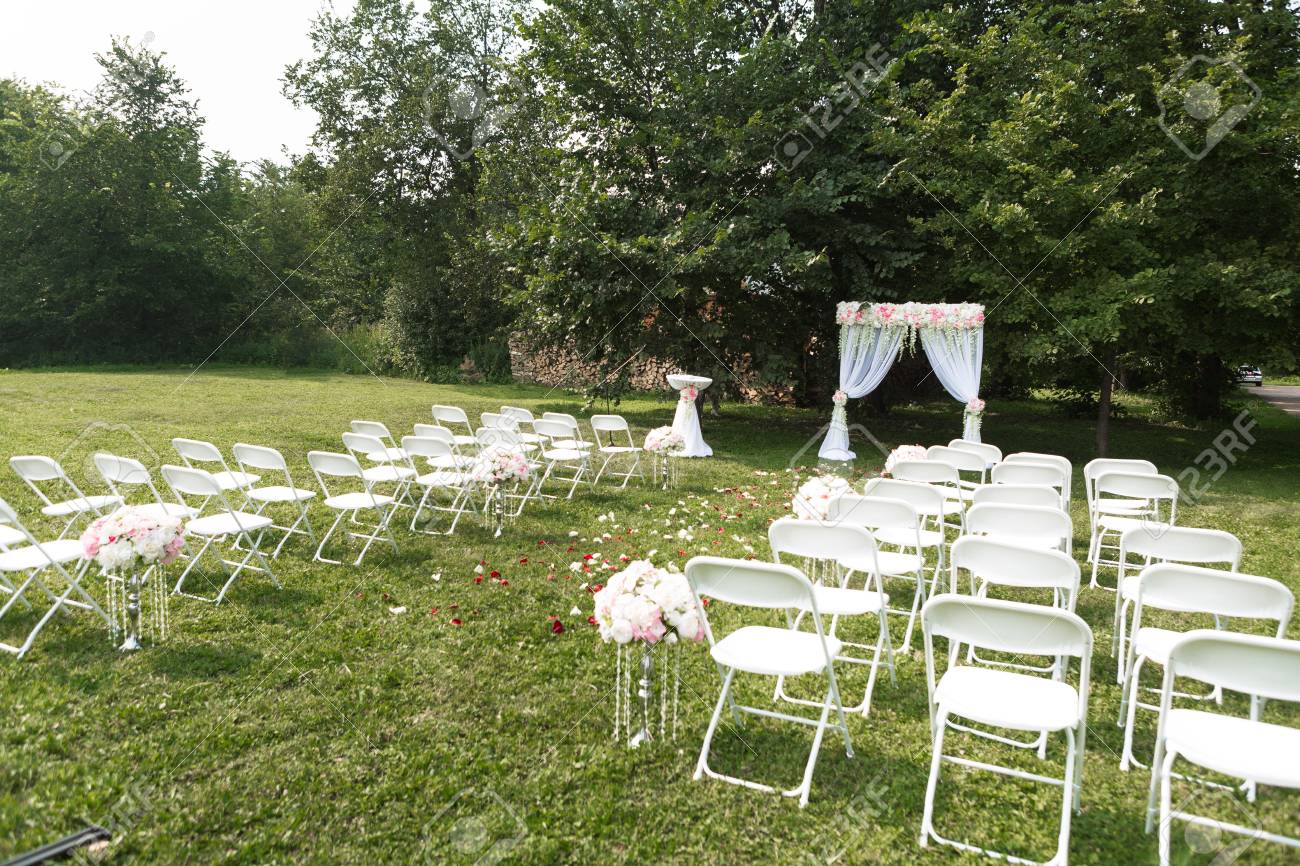 Beautiful White Arch With Flower Decorations For The Wedding