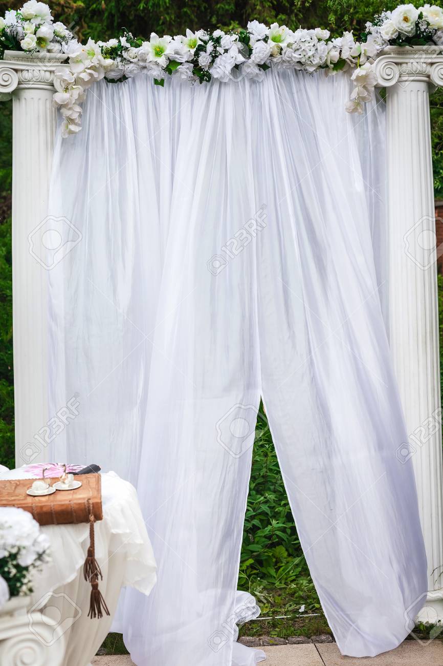 Wedding Arch With Columns Decorated With Flowers Stock Photo