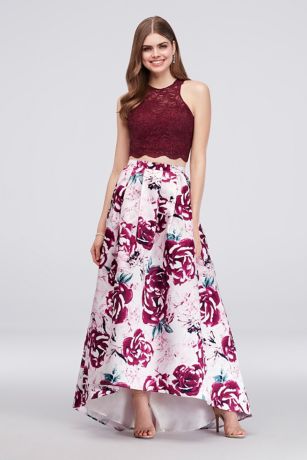 Glitter Lace Two Piece Ball Gown With Floral Skirt David S Bridal