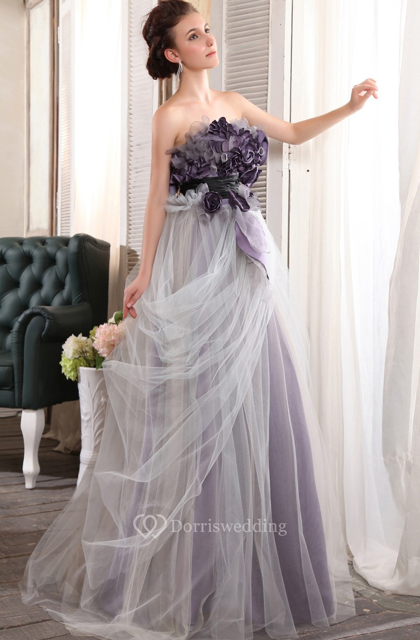 Elegant Strapless Floor Length Dress With Floral Top Dorris Wedding