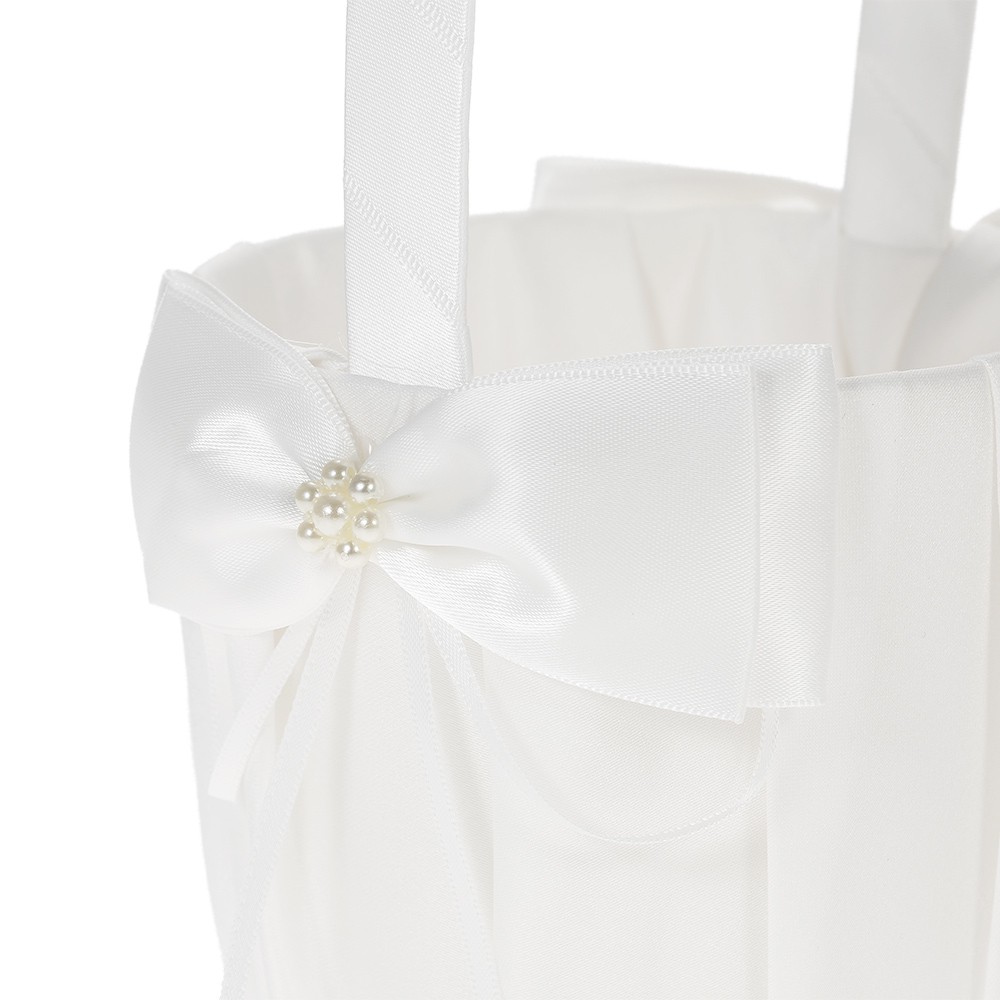 Ivory White Satin Wedding Flower Girl Basket With Bowknot