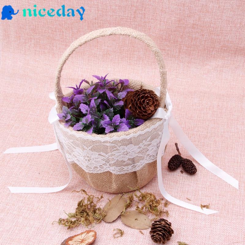 Flower Girl Basket Retro Jute Burlap Lace Wedding Flower Basket