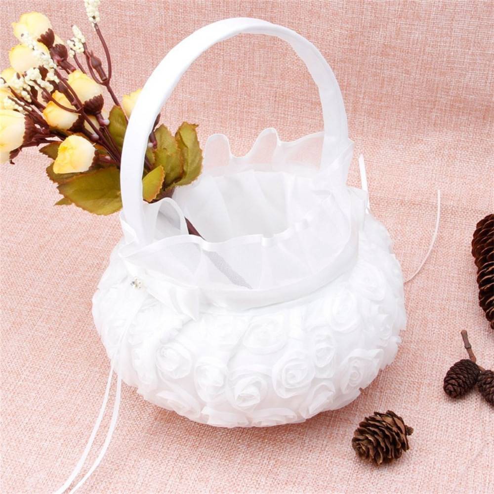 Rose Flower Girl Basket For Wedding Basket Decoration White