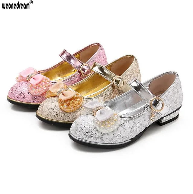 Weonedream Pink Girls Shoes 2018 Lovely Pu Leather Bow Flower Girl
