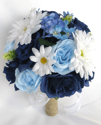 17 Pc Package Wedding Bouquets Bridal Silk Flowers Navy Blue Royal