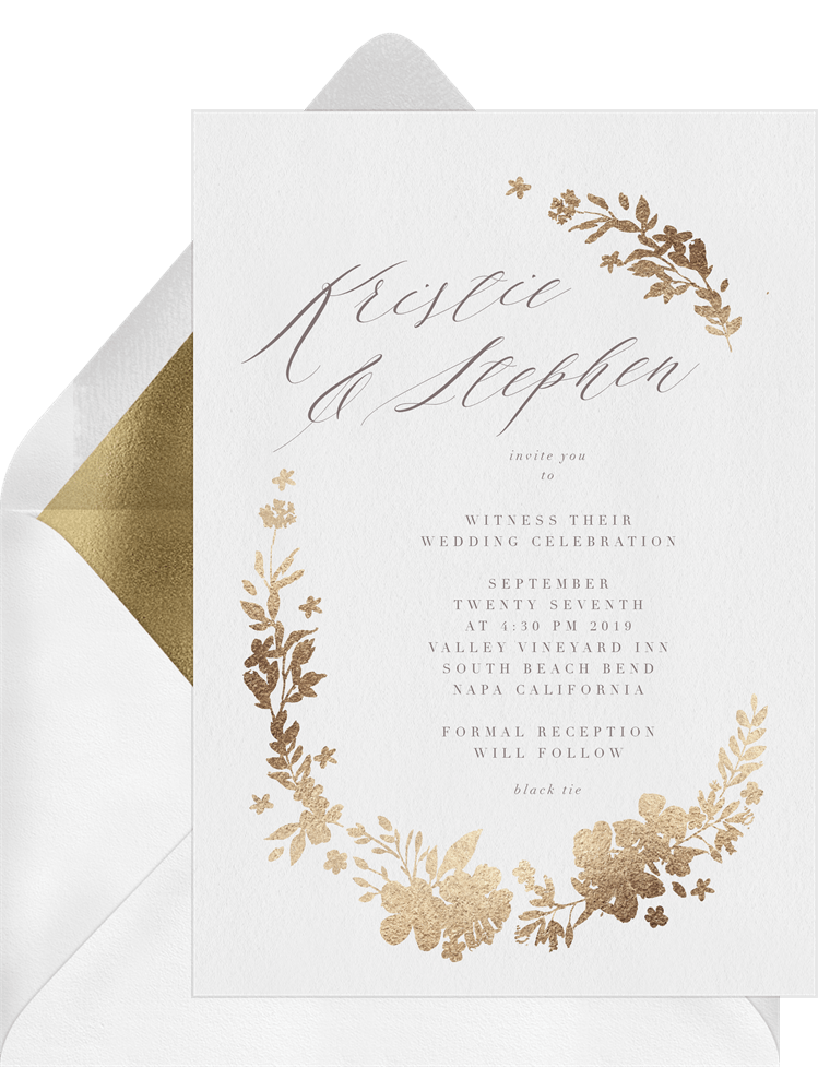 Golden Floral Wreath Invitations In White Greenvelope Com