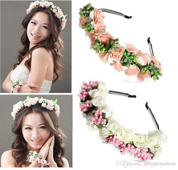 Bridal Beach Wedding Flower Hair Garland Crown Headband Floral