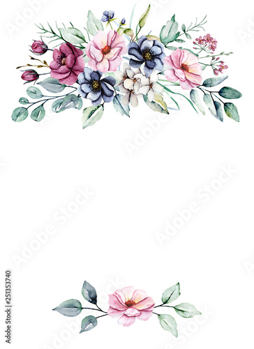 Watercolor Flowers Frame Card With Floral Border Perfectly For A