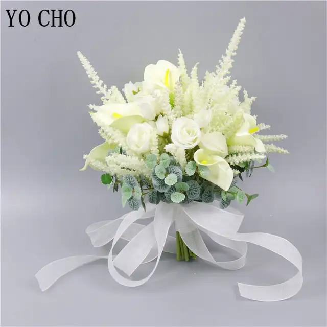 Yo Cho White Rose Calla Lily Flower Bouquet Newest Design Bride