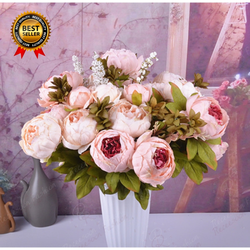 Fake Flowers Vintage Artificial Peony Silk Flowers Bouquet Wedding
