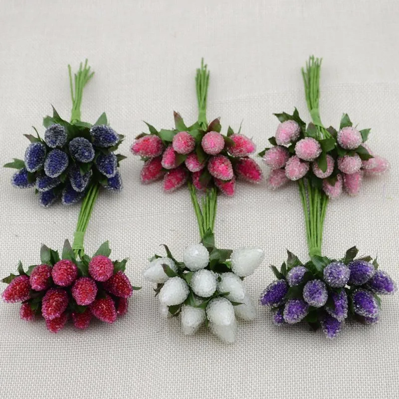 10pcs Lot Diy Handmade Simulation Flowers With Leaf Strawberry Red