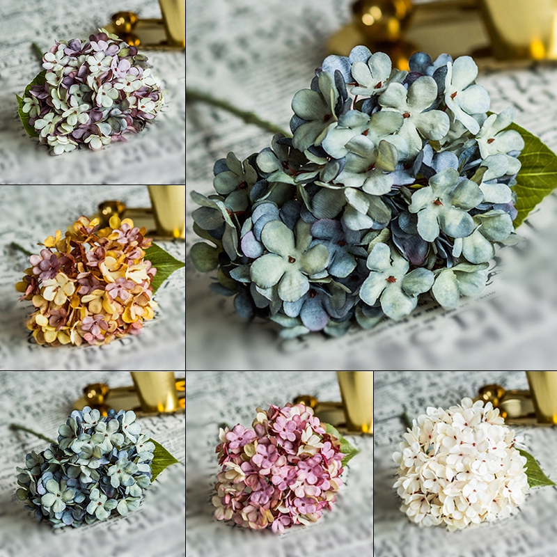 Artificial Flower Cafe Display Design Silk Plastic Hydrangea