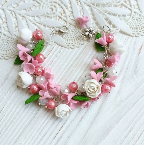 Polymer Clay Jewelry Floral Bracelet Polymer Clay Bracelet Etsy