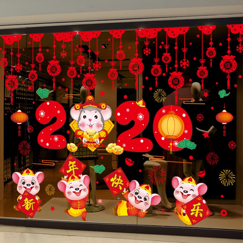 New Year New Year Decoration Shop Glass Door Sticker Window Flower