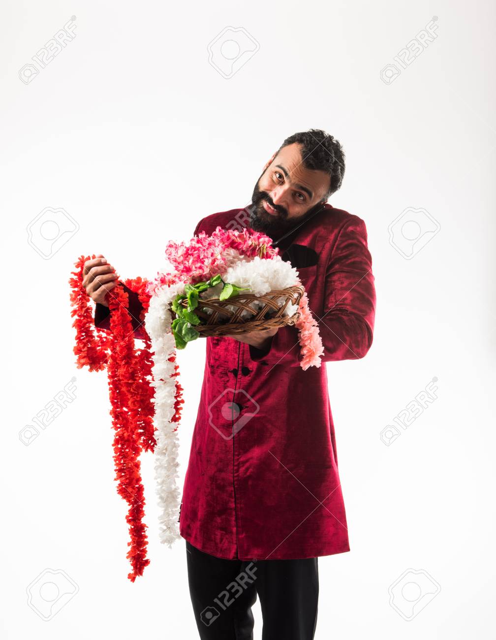 Indian Man Holding Flower Garland Series For Decoration On