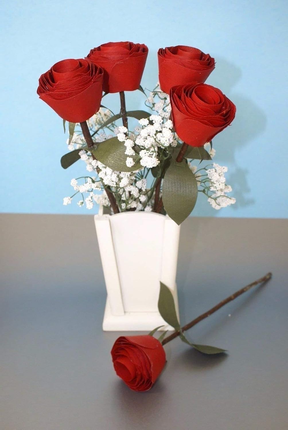 Amazon Com 5 Handmade Wooden Red Roses And Vase For 5 Year