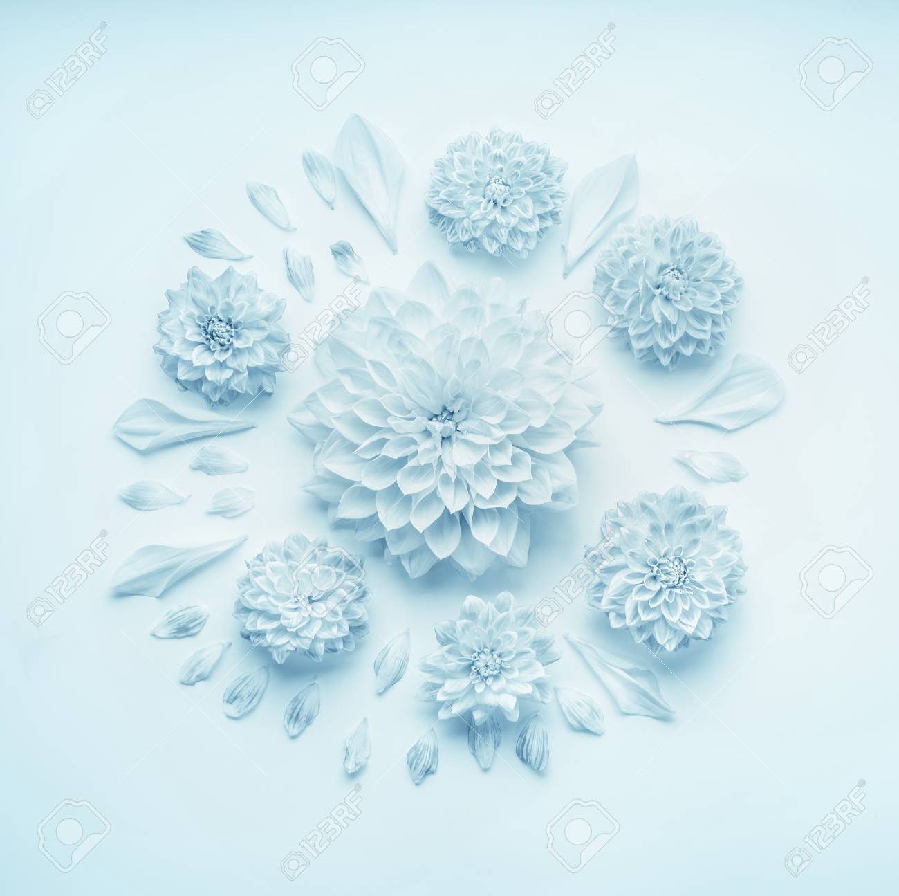 Round Floral Composition With Turquoise Blue Pastel Flowers