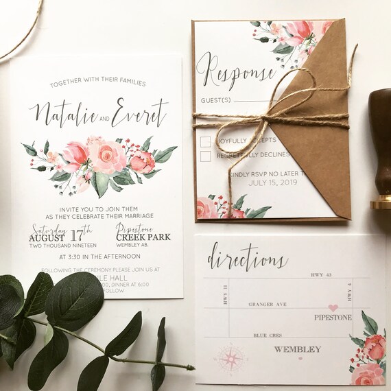 Shades Of Pink Floral Wedding Invitation Blush Wedding Etsy