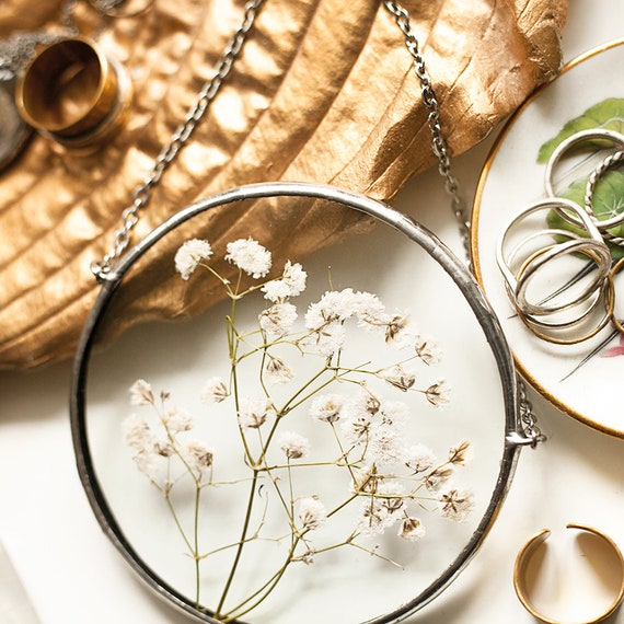Pressed Flower Frame Real White Flowers Baby Breath Decor Etsy