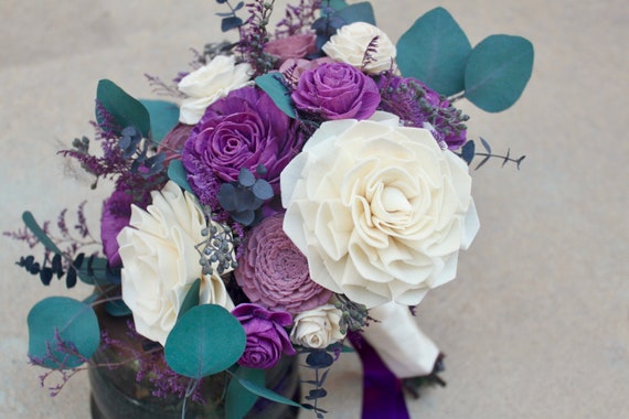 Purple Wedding Bouquet Purple Sola Flower Bouquet Fall Etsy