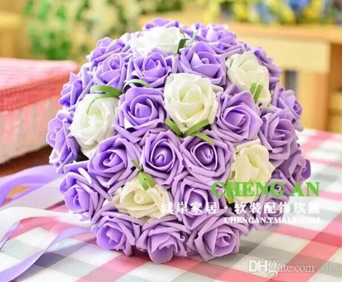 Newest Wedding Bouquets Cheap Handmade Artificial Purple Beige