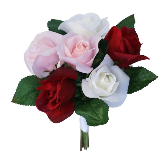 Red Pink Ivory Silk Garden Rose Stems Artificial Wedding Etsy