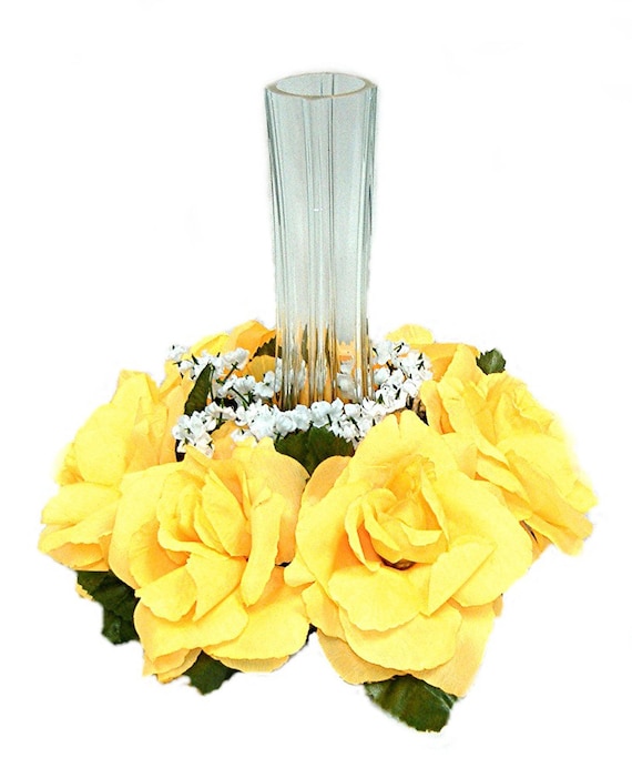 Yellow Silk Flower Candle Ring Wedding Centerpiece Party Etsy