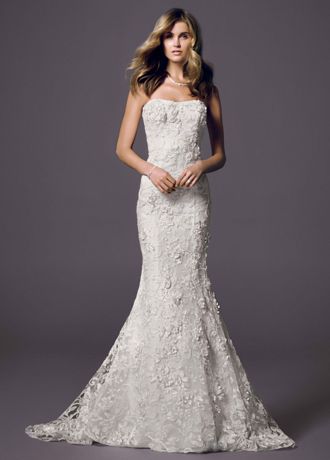 Petite Trumpet Gown With Subtle Pink Flowers David S Bridal
