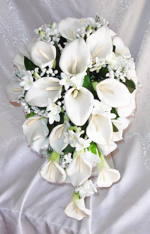 White Cascade Bridal Bouquet With Baby Breath Accents Etsy
